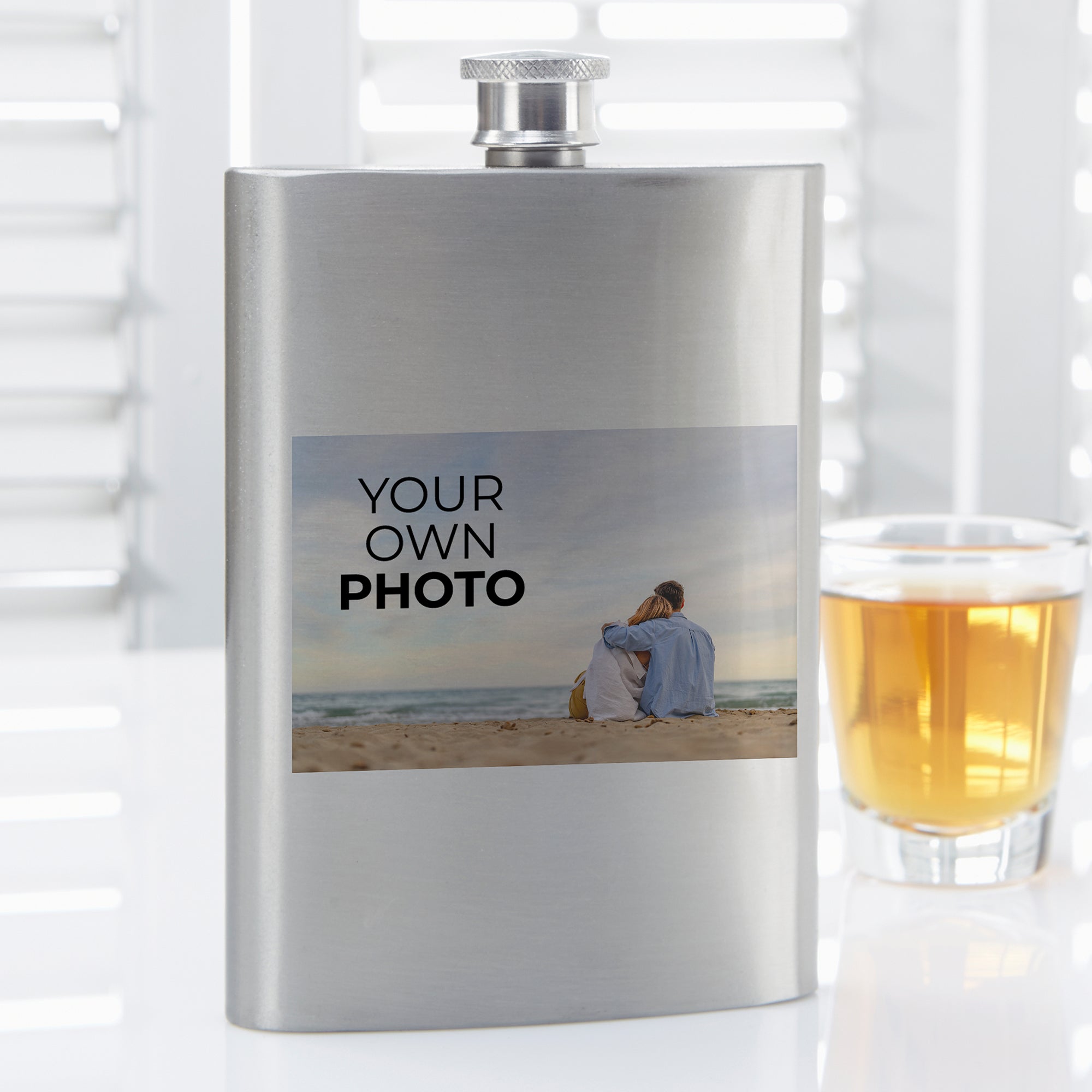 Create your own personalized flask with Your Own Photo Personalized Photo Flask. Perfect for birthdays, groomsman and much more!