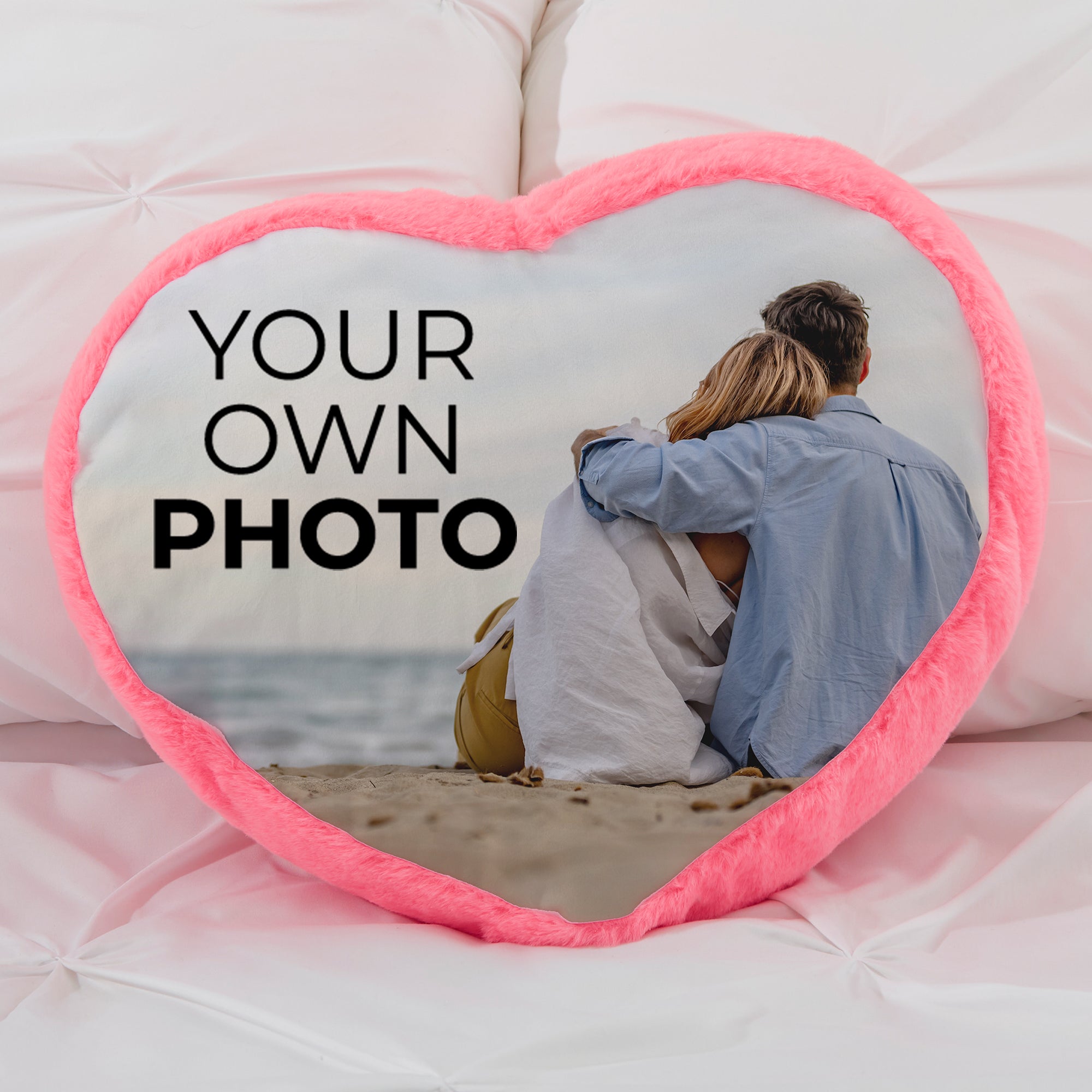 Add a whimsical décor piece to your sofa or bed with Your Own Photo Personalized Pink Heart Throw Pillow.