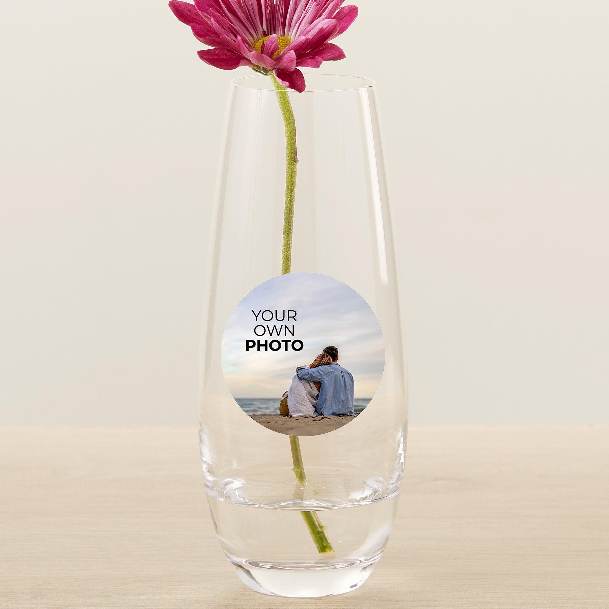 Add a special piece of photo décor with Your Own Photo Personalized Printed Bud Vase.