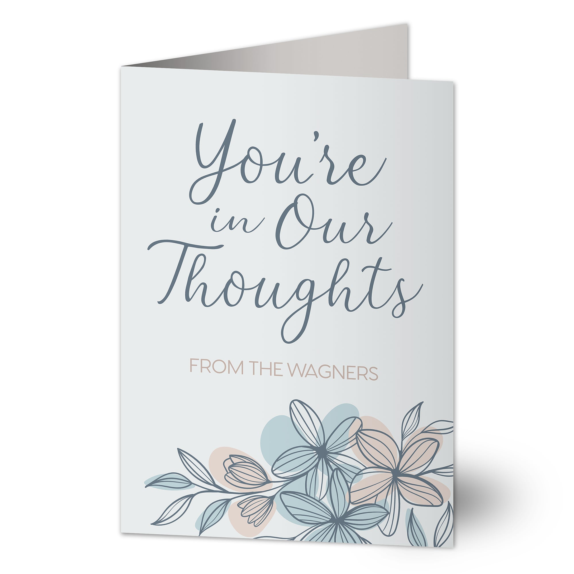 Send sentiments of sympathy to your recipient with our You're In Our Thoughts Personalized Sympathy Greeting Card.