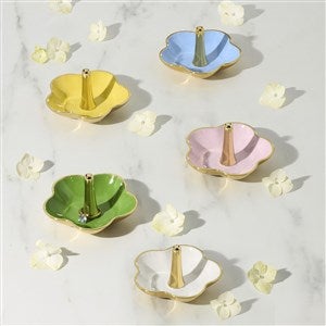 - Ring dish with stand in center to stack in gold metal with enamel colorful pop inside of dish