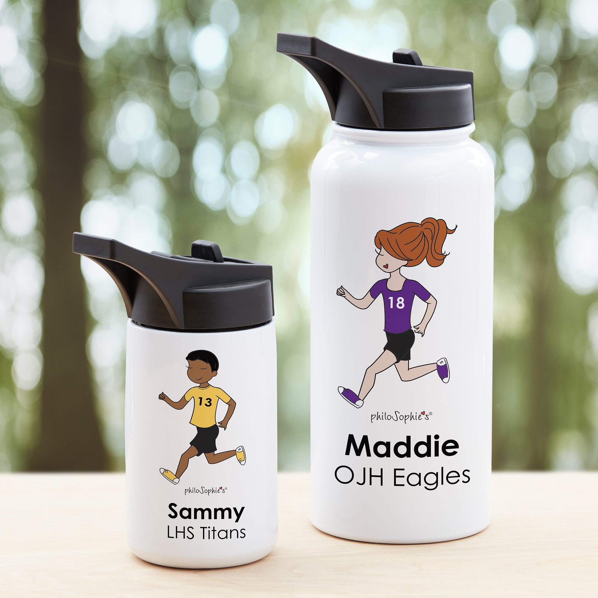 Hydrate in style with our philoSophie's® Cross Country Personalized Double-Wall Vacuum Insulated Water Bottle. Makes a wonderful gift for any all star!