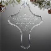 Help them commemorate their big day with the Marriage Blessing Cross Engraved Glass Ornament.