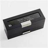 Engraved Graduation Black Wooden Watch Box with Drawer