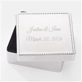 Our Beaded Square Keepsake Box is the perfect gift for the loved one who needs a safe place to hold their favorite jewelry pieces when not wearing them! The inside of this is a lined open area for general accessory or keepsake storage. Engrave the lid with initials, an important date, or a sweet personal note!