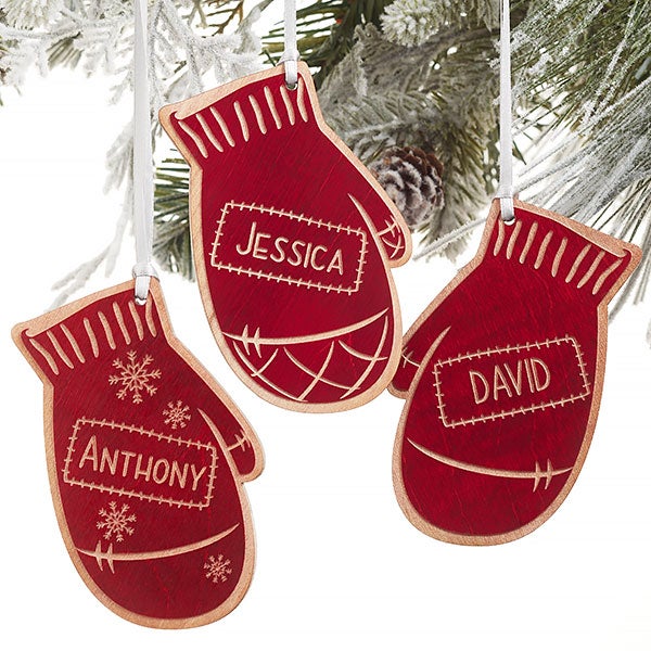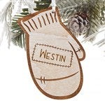 Family Winter Mitten Engraved Wood Ornament- Red Maple