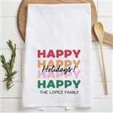 Add cheer to your kitchen this season with our Festive Phrases Personalized Tea Towel, featuring a stylish pattern of repeating holiday words like Happy, Merry, Peace, and Christmas. Crafted from soft, absorbent cotton, this towel is perfect for everyday use or as a decorative accent.