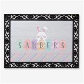 This is the cutest mat and love the personalization. It is well made with quality material.The Easter mat can be removed and another mat can take its place. The black mat is sturdy and does not move.