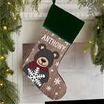 Holiday Bear Family Personalized Burgundy Christmas Stocking