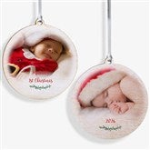 Holly Branch Personalized Baby Photo Ornament- 3.75" Wood - 2 Sided