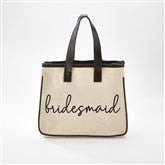 Give her a tote she'll love before, during, and after the wedding! We love using this bag to "wrap" gifts for the bridal shower or bachelorette party! The tote's comfortable leather straps easily fit over the shoulder for a travel, beach, or gym bag. This item comes pre-personalized- so no extra thinking is required, it's cute as-is!