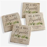 Laurels of Love Personalized Wedding Tumbled Stone Coaster Set