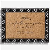 Create a loving welcome for friends and family, all year round, with our Live By Faith Personalized 18x27 Synthetic Coir Doormat. Made from synthetic coir-inspired material, this mat accents your home with the look and feel of a coir mat without any of the shedding.