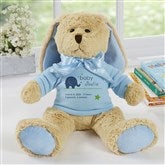 The bunny is adorable and very soft. I especially like the blue inside the ears and the bottom of the feet. I can't wait to give it to my little grandson. I hope the bunny will provide comfort for many years. My only suggestion is to make the customization text a little darker.