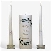 Celebrate the special day with our Personalized Eucalyptus Wreath Wedding Unity Candle Set. The unity candle is wrapped with an eucalyptus wreath photo print around the entire candle and brushed with pure American beeswax to give it a textured look and feel.