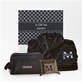 Elevate the art of relaxation with our For Him Personalized Luxury Robe Gift Set, a perfect blend of comfort and style. This thoughtfully curated set features a plush robe, embroidered travel bag, and a valet tray all packaged in a custom keepsake box, ready for gift giving.