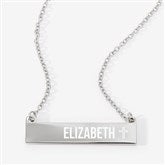 Celebrate faith and individuality with the Blessed Name Personalized Nameplate Necklace. Featuring a sleek horizontal bar engraved with your chosen name and a delicate cross detail, this piece beautifully blends meaningful symbolism with modern design. Whether layered or worn alone, it’s a subtle statement of belief and identity.