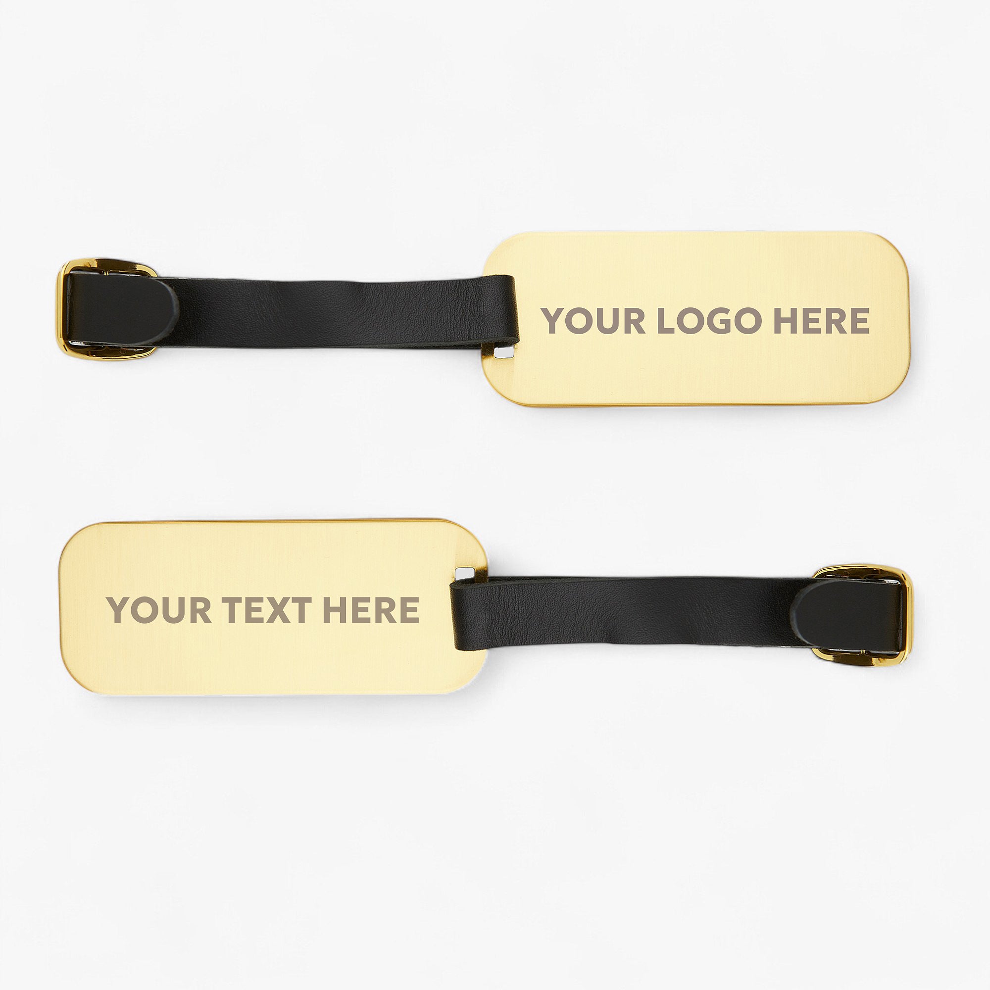 Travel in style with the Engraved Logo Brass Luggage Tag. Attaches easily and securely by the vegan leather strap with buckle closure. Personalized with any name, logo, and/or text, this classy luggage tag is the perfect gift for traveling employees.