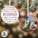 Pawfect Christmas ornament.This round Christmas ornament is perfect to welcome a new dog to grandma's house. The size is perfect. It does not weight down the tree branches. The image looks so clear and sharp.