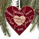 Lots of names on heart puzzle ornamentBy Shopper  (NEWPORT NEWS, VA) - December 11, 2024 Really nice, front and back. I do wish there was room for one more name/puzzle piece. I do like that you can put different names on front and back. And year on back.