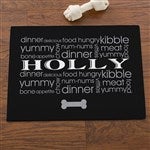 Great quality By Shopper  (El Portal , FL) - June 19, 2015 I love the mat, great quality, soft...definitely helped with the water mess from the bowl. Only thing i don't like is that i would have prefered the pet name be at the top or bottom of the mat...the food and water bowls cover the name which kind of defeats the purpose.