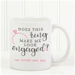 Fun gift idea!This adorable coffee mug is such a great gift. The cutest saying for the girl who is so excited about getting engaged and just loves wearing her sparkly engagement ring.