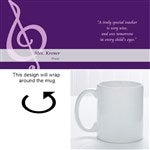 Great tribute and practical gift.Ordered the music clef for a 13 yesr old young man who started his own band two years ago. He was crazy about having his own cup with his band name on it.