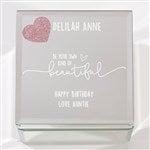 So beautiful and perfect By Shopper  (Bronx, NY) - June 26, 2018 I bought this jewelry box for my 9 yr old daughter for her birthday. She loves it so much. She keeps all her jewelry and a picture of her with her younger sister inside. Thank you so much personalization for making this gift so perfect and amazing.