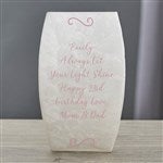 Small frosted table top lightIt was a mother's day gift for my mom. It arrived earlier than expected and she absolutely loves it! Great job on the engraving!