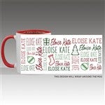 Repeating name holiday mugI ordered three of these mugs and all of them are perfect! So fun and everyone loves them.