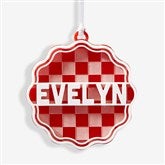 Bring a touch of personal flair to your holiday decor with the Scalloped Checker Name Personalized 2 Layer Acrylic Ornament. The two-layer design combines two acrylic colors with a personalized touch, making each ornament uniquely yours. Ideal for gifting or adding a personal touch to your seasonal decor.