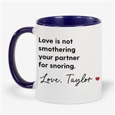 The mugs are high-quality and and have a user friendly, comfortable handle. Don't know if this is possible, but a wraparound imprint would be an improvement. That way the message would be visible to the "user" and the "table mate".