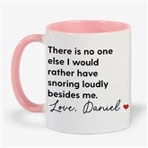 The mugs are high-quality and and have a user friendly, comfortable handle. Don't know if this is possible, but a wraparound imprint would be an improvement. That way the message would be visible to the "user" and the "table mate".