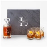 Introducing our elegant Lavish Last Name Personalized Whiskey Glass & Decanter Gift Set, the perfect choice for whiskey enthusiasts and connoisseurs alike. This luxurious set features a beautifully crafted decanter & four whiskey glasses packaged together in a custom keepsake box.