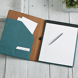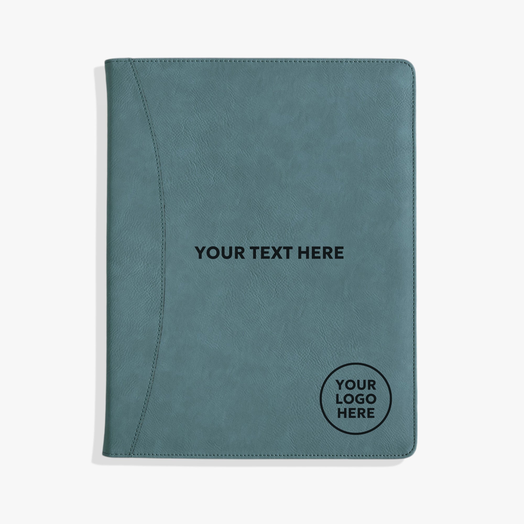 On a conference table or carried into a meeting, our Personalized Logo Teal Padfolio makes an impressive statement.
