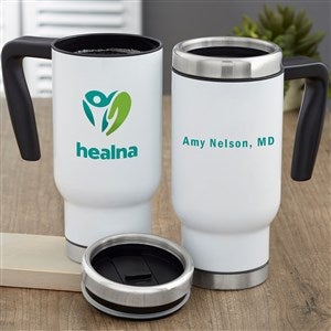 The perfect promotional item for the company giveaways— our stainless steel custom corporate logo travel mug offers convenience on-the-go.