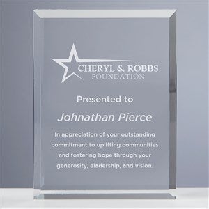 This custom logo engraved acrylic recognition plaque makes a stunning ornamental piece for the desktops of your co-workers.Whether it's used as a nameplate, achievement award, or recognition plaque— it's sure to be an eye-catching keepsake for the desktops of your employees and executives