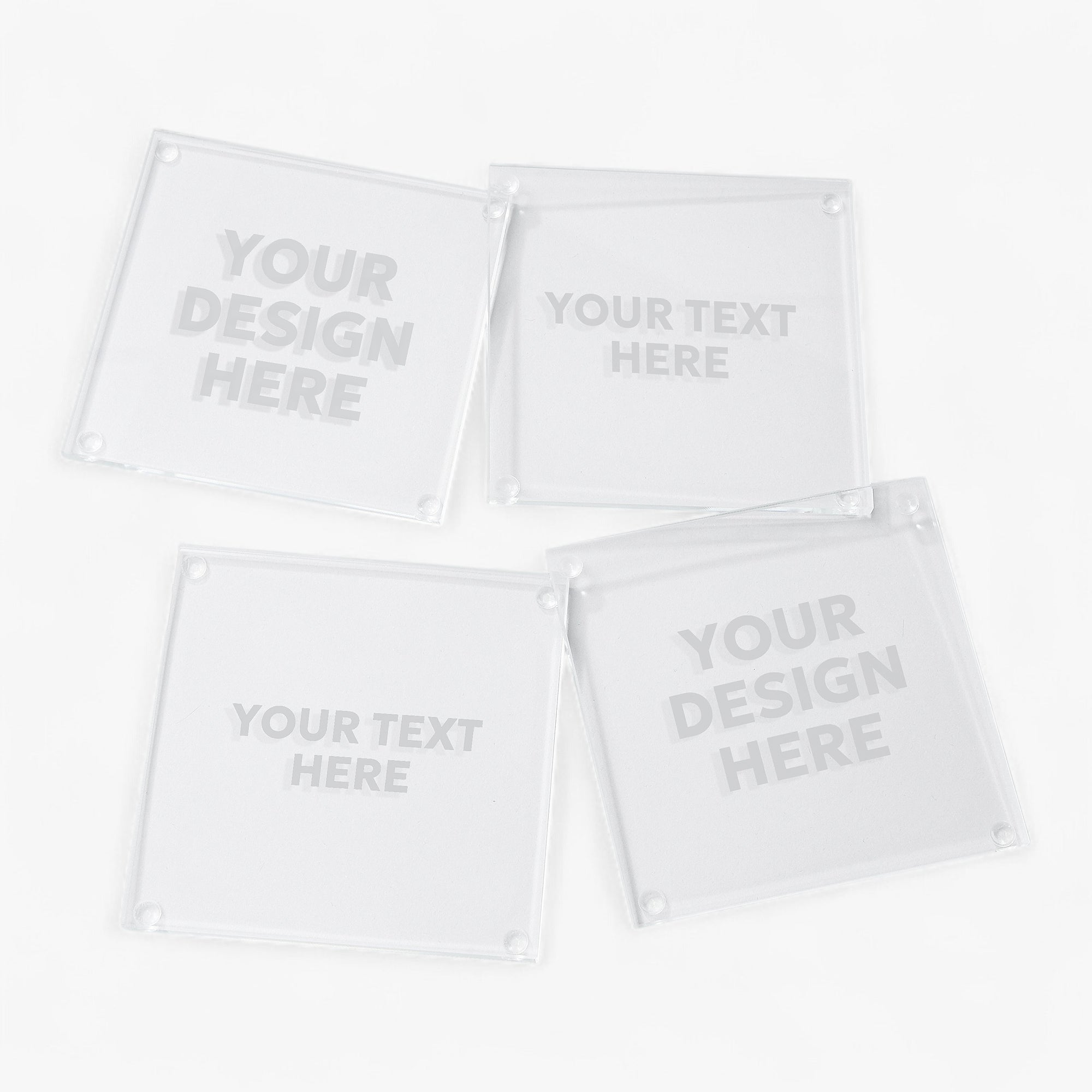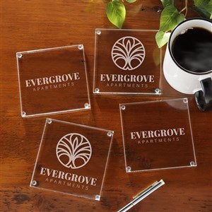 Protect your office furniture while advertising your company at promotional events and employee giveaways with our custom corporate logo engraved glass coasters. This custom logo corporate gift is a stylish addition to any office or conference room for clients, employees, and executives.