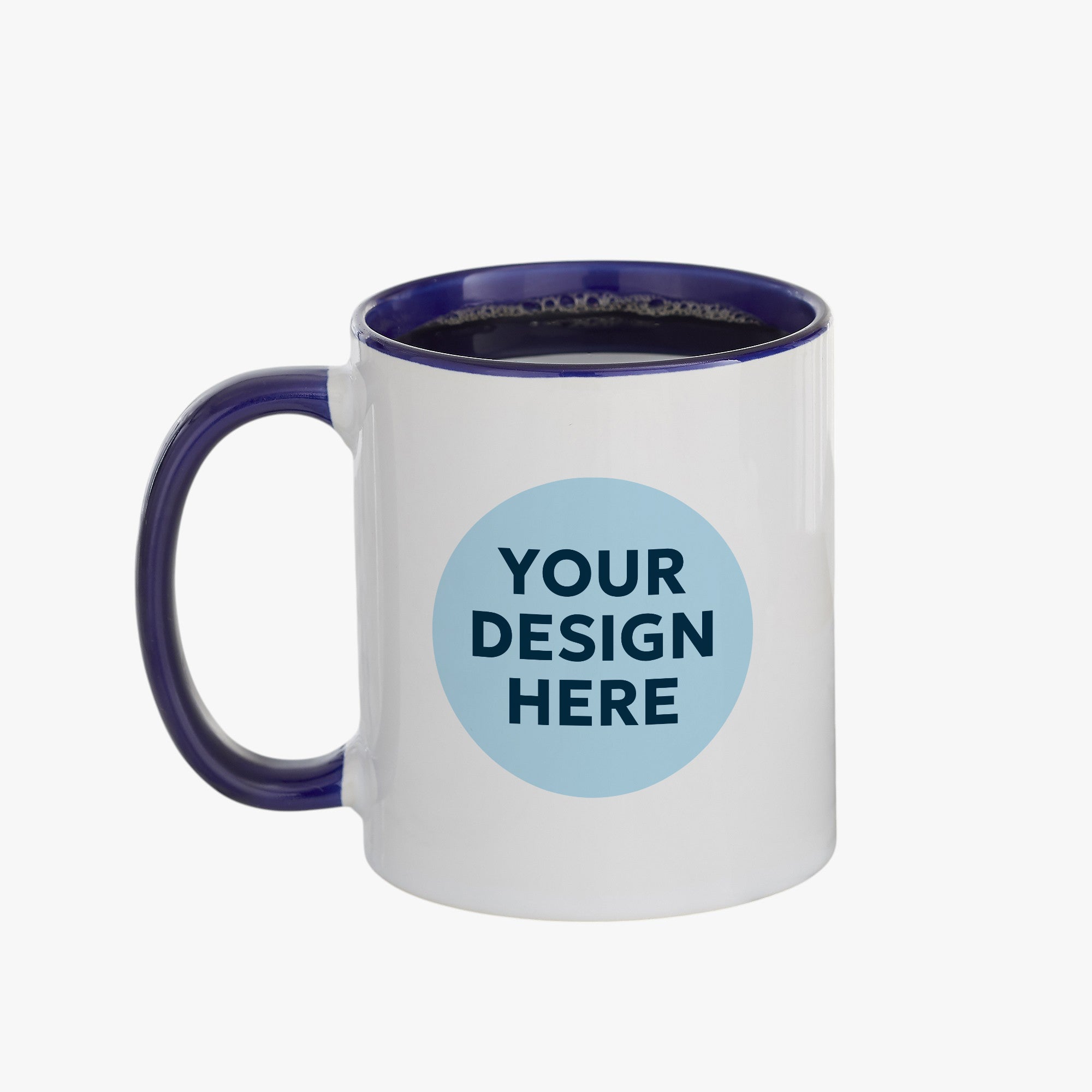 Our Blue handled ceramic custom logo coffee cup is a simple, inexpensive promotional item for your next employee giveaway.