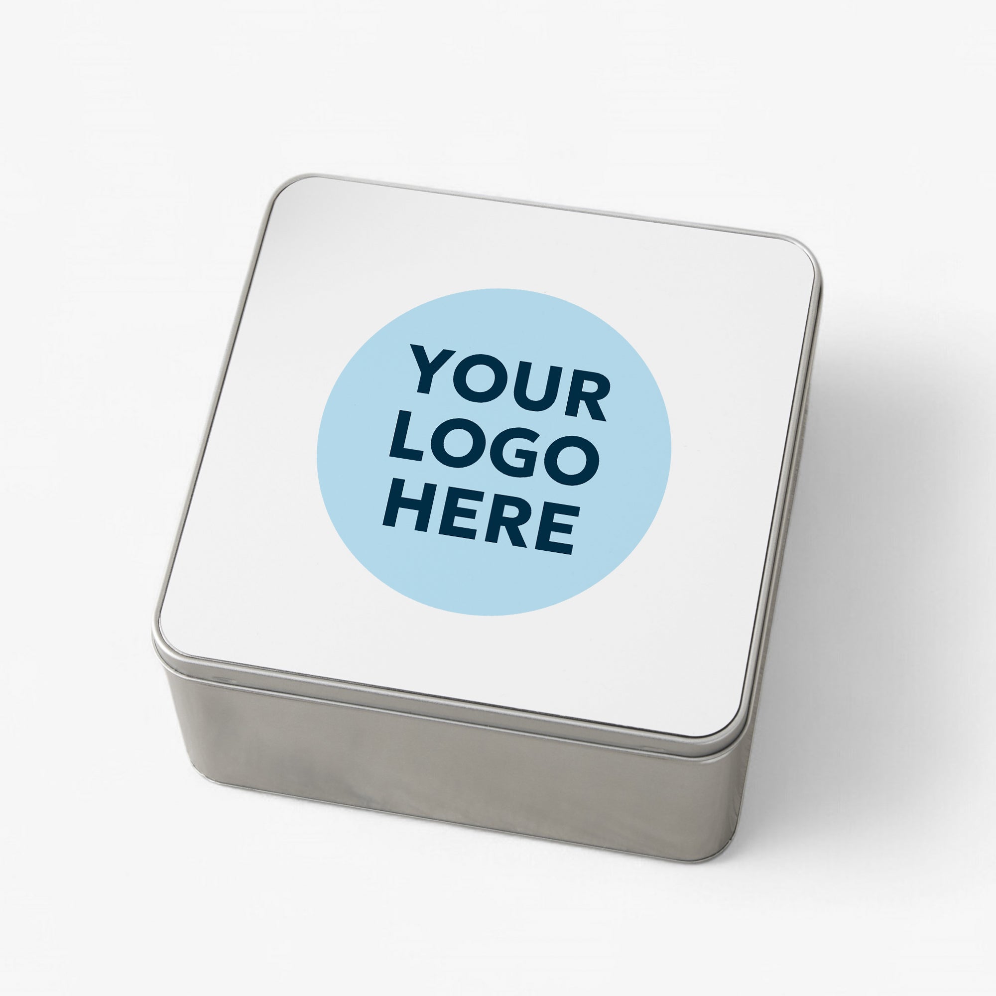 The Personalized Company Metal Tin can be used for organization, storage, or to create a thoughtful gift for employees, clients, or customers. Personalize with any name, logo, slogan, and/or text and fill with cookies, candies, or small trinkets (not included).