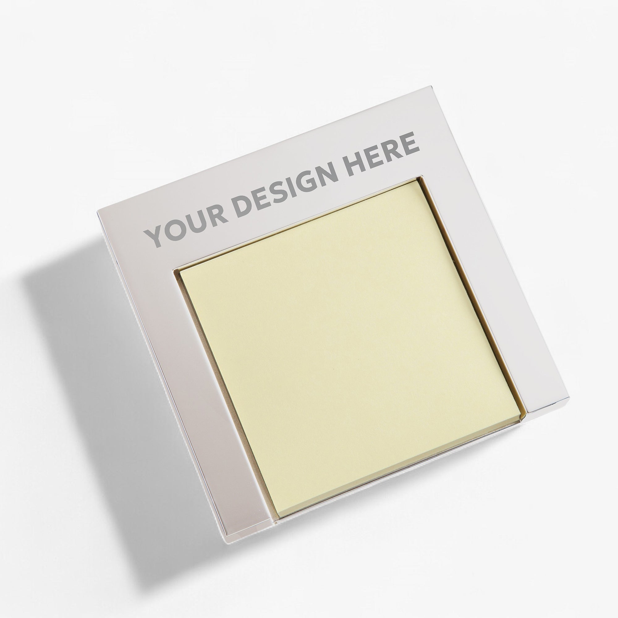 Our stylish, custom corporate logo sticky note holder helps co-workers maintain a well-organized desktop.