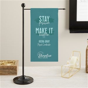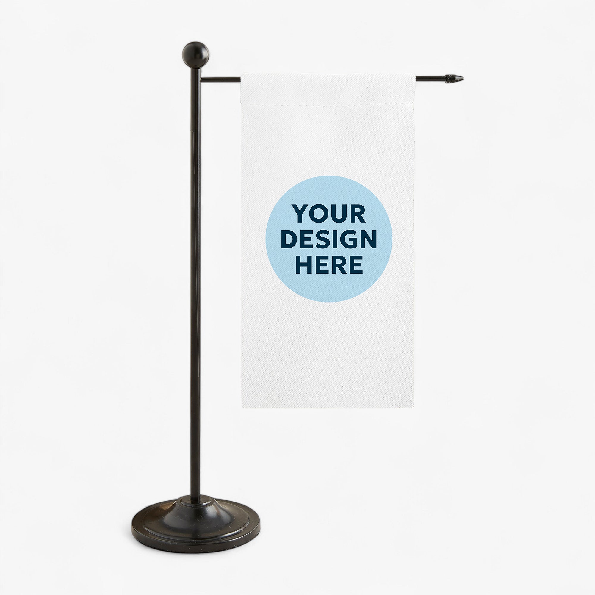 Create a personalized desk decoration with the Personalized Logo Mini Garden/Desk Flag. Custom printed in full color with any name, logo, and/or text, this small flag can commemorate a good business year, or can be displayed with a motivational quote to uplift your employees.