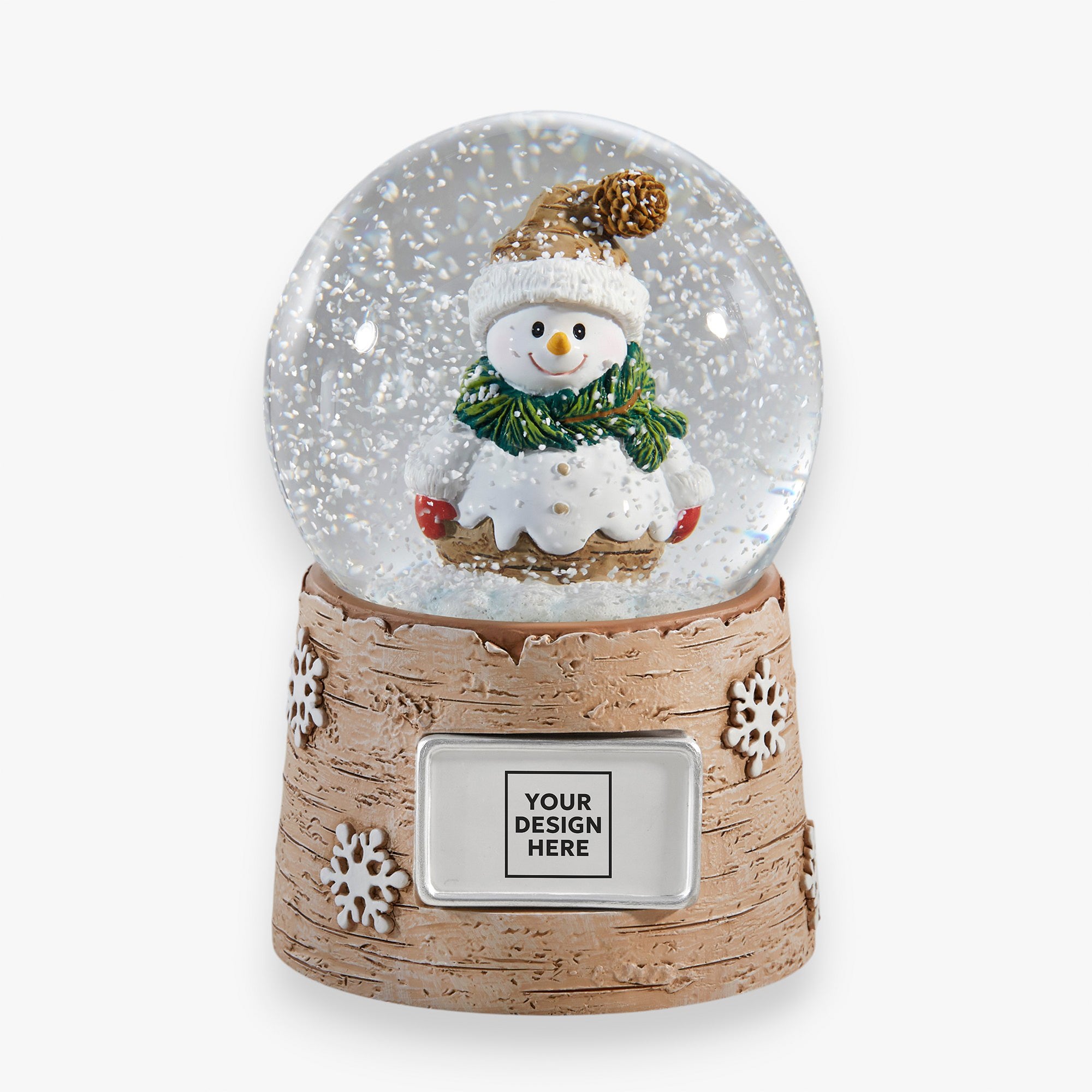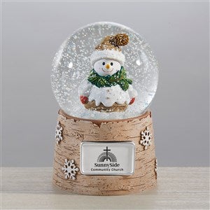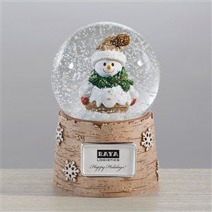 Bring the joy of a winter wonderland into your office or employees homes with the Personalized Logo Snowman Snow Globe. The metal plate attached to this classic snow globe can be personalized with any name, logo, and/or text.